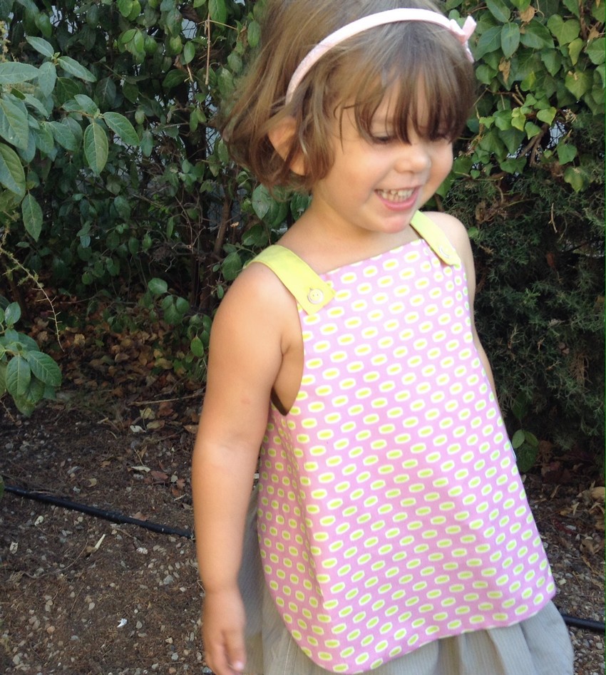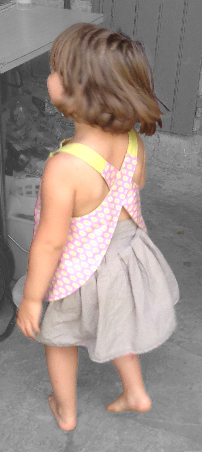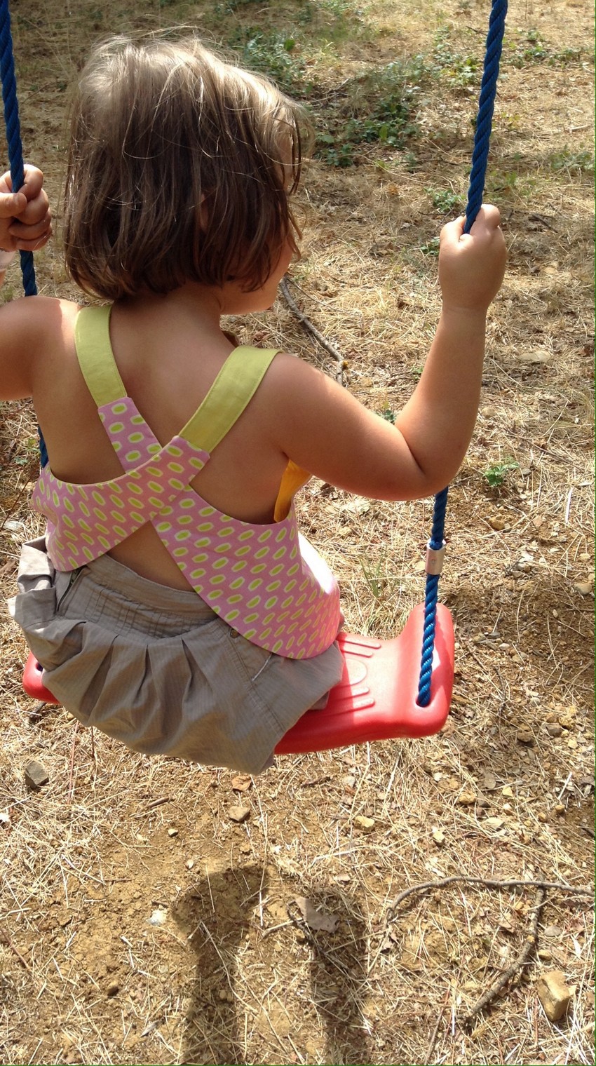 Ce petit top s’inspire d’un joli modèle du livre de couture « Les Intemporels pour enfants », d’Astrid Le provost, mais comme Barberose est amoureuse de tout ce qui ressemble à un tablier ou une salopette, elle l’a redessiné à la sauce « salopette » !