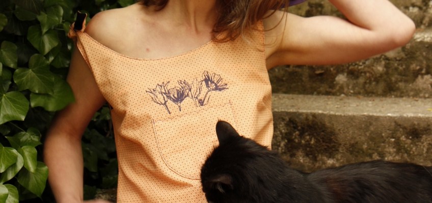 Aurions-nous laissé traîner quelque petite graine au fond des poches de ces Robes-tabliers, pour que s’en échappent aujourd’hui ces tendres petites fleurs champêtres ? Ou bien aurais-je un jour croisé la plume voyageuse de Cécile M, ma complice graphiste pour cette nouvelle collection Fish & Flowers (qui fait parler les poches et sourire les petites robes) ?