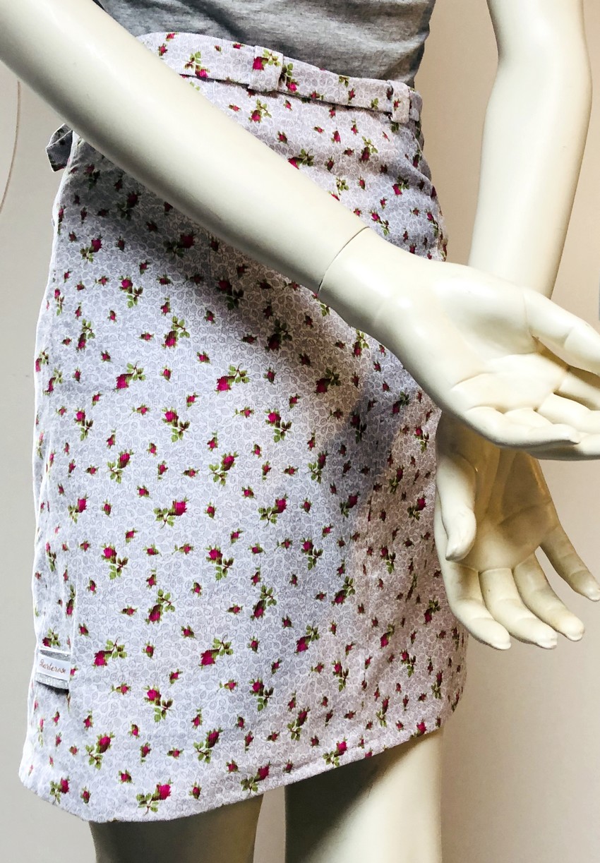 Jupe velours blanche roses poches à passepoil 3