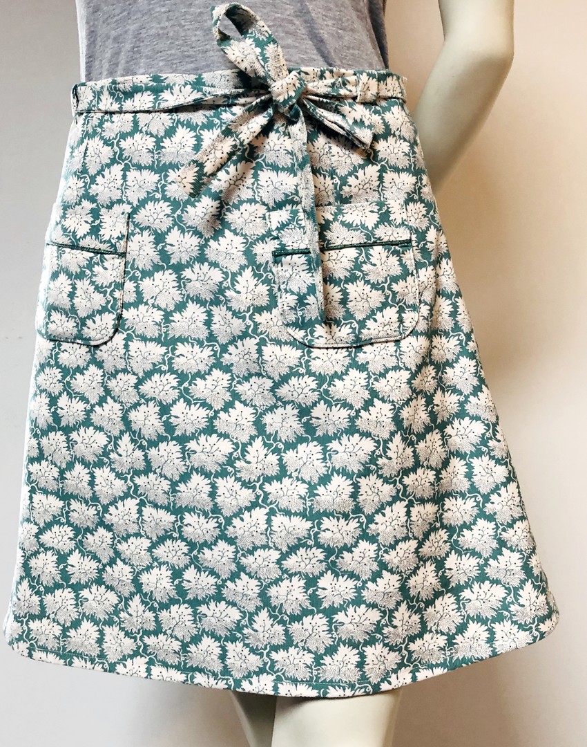 Jupe velours turquoise écru poches à passepoil 1