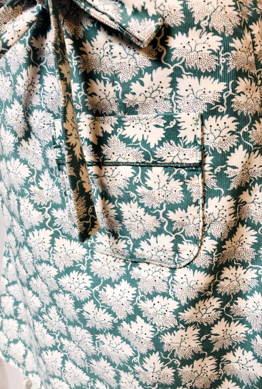 Jupe velours turquoise écru poches à passepoil 2