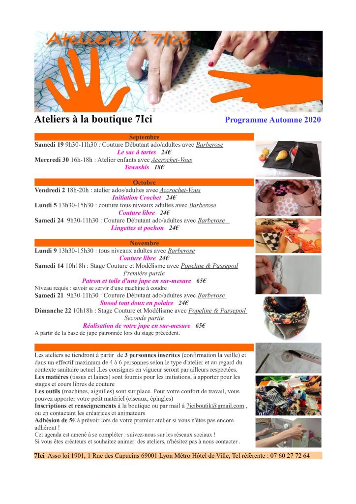 Voici pour vous inspirer une petite collection d’ateliers à venir savourer à la boutique 7Ici.