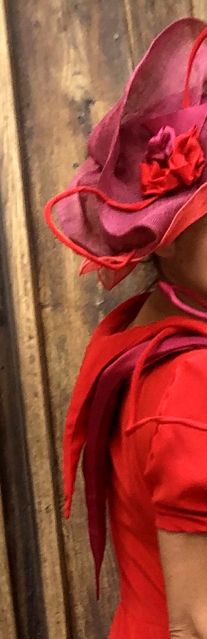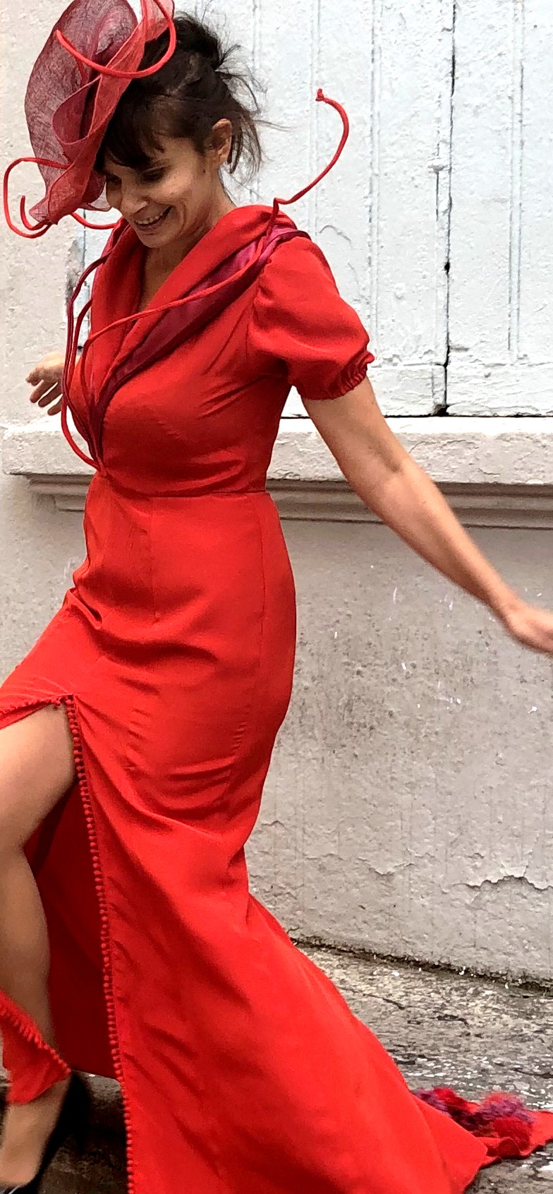 Sans trop en dévoiler, je vous envoie telle une parenthèse en cette période contrariée un aperçu des magnifiques et insolites ouvrages conçus autour du thème Les Mots… Une robe écarlate qui dit les mots et maux du féminin singulier, conçue avec mes complices de 7Ici : Popeline et Passepoil pour le patronage à 4 mains, Accrochet-Vous et tout le collectif pour les extensions florales et *Effet de Tête pour cette incroyable coiffe… le tout porté par ma sublime complice et muse, Lili.