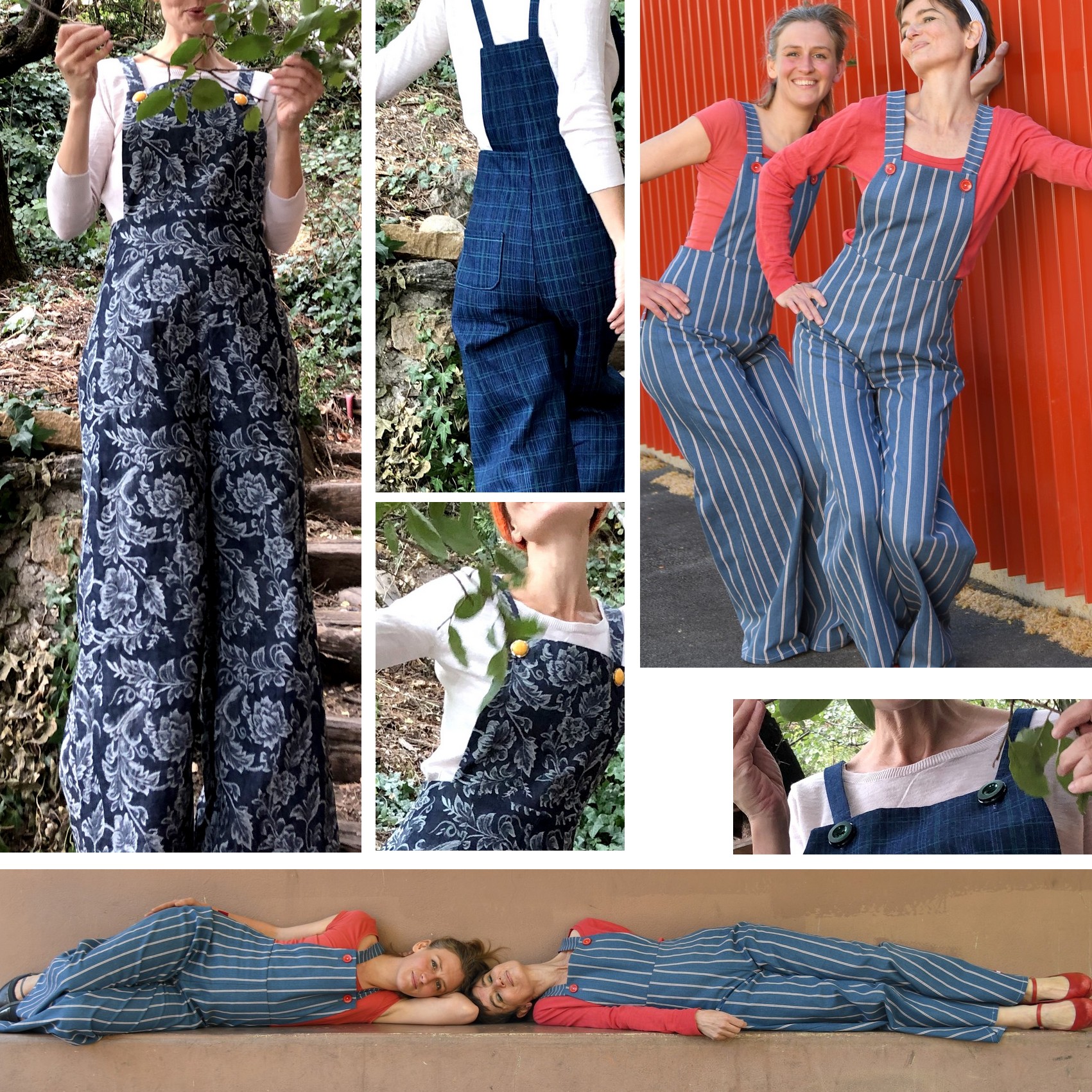 J’ai commencé à coudre il y a une dizaine d’années parce que je ne trouvais pas dans les magasins de prêt-à-porter les vêtements que j’avais vraiment envie de porter … c’est ainsi que tout naturellement, la création de salopettes a pris une grande importance dans mon activité ! Petit à petit et à force de recherches, j’ai composé le patron de ma salopette « fétiche » , qui élance la silhouette et donne de l’allure (à l’inverse de la forme que l’on rencontre souvent pour cette famille de vêtement ! ). Voici un florilège de ces salopettes que je continue de réaliser chaque saison … et je vous remercie de m’y encourager car elles vous plaisent beaucoup ! Peu de modèles dans mon e-shop et à la boutique 7Ici ce jour (et pour cause !), mais une belle série en cours de découpe qui sera à découvrir dès Septembre !