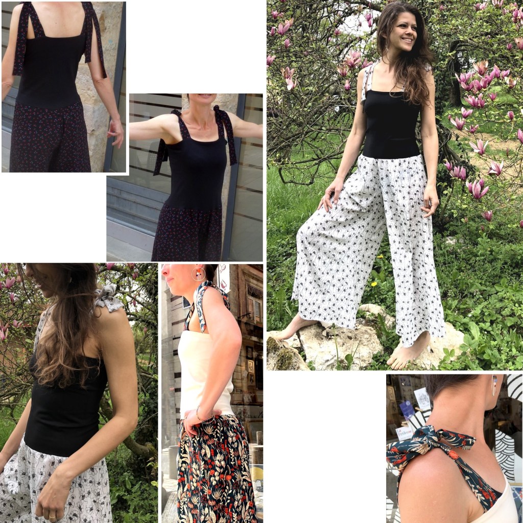C’est la demande spécifique d’une amie qui m’a conduite à la création du premier pantalon BoQ le Froc. Confortable et seyant, j’ai vite réalisé qu’il était très adaptable à toutes les morphologies et styles… avec pour caractéristique de dessiner sur votre silhouette un postérieur de rêve (d’où son petit nom;))! De pantalons réalisés en essayages joyeux, il est devenu un beau jour une combi-salopette … sorte de robe avec des jambes ou pantalon avec un buste noué. Bref, la tenue idéale pour célébrer l’été ! Fait pour le farniente j’en ai finalement réalisé pour des mariages … et quelle que soit l’occasion, ce BoQ décidément est devenu la star de mon activité, sur les marchés comme en boutique … plus d’été sans BoQ le Froc ! Pour cause de succès, il en reste à ce jour très peu à la boutique 7Ici ou sur mon e-shop mais je peux encore les réaliser sur demande avant la fin de l’ été ! Contactez-moi !